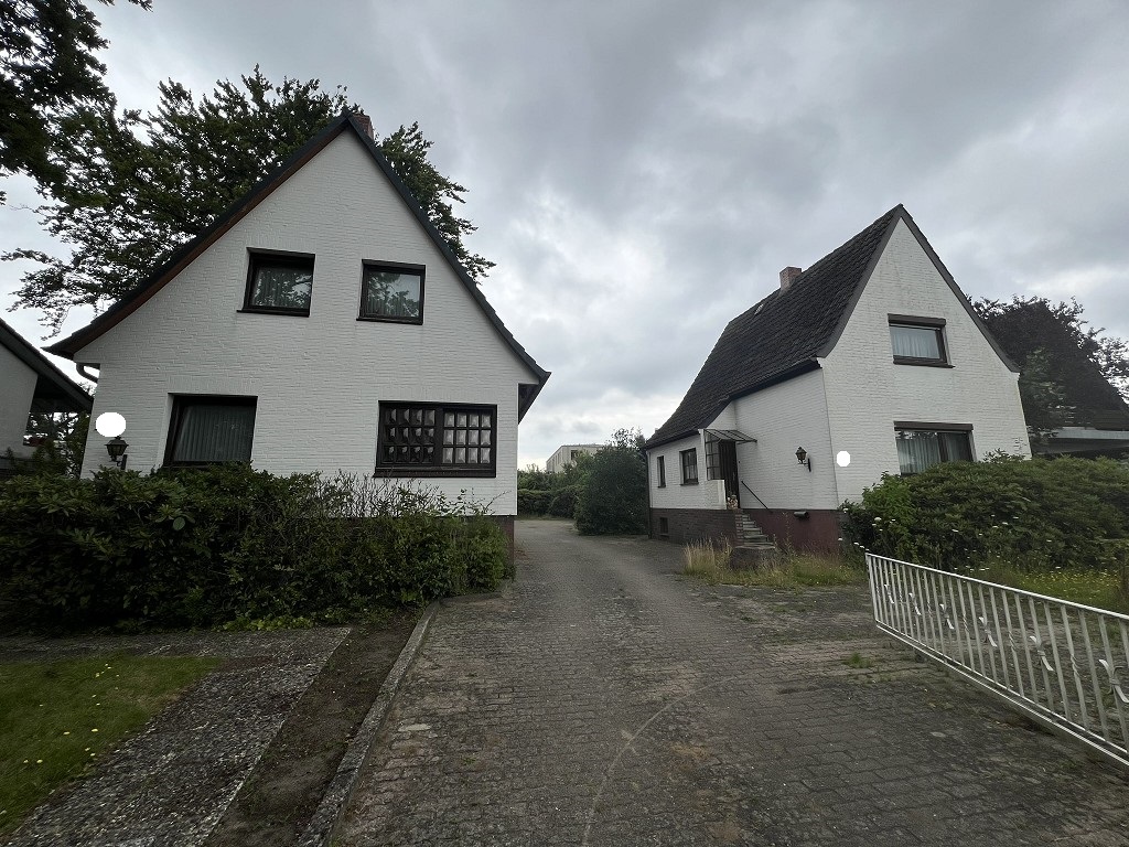 Das Grundstück ist bebaut mit zwei kleinen Einfamilienhäusern, die noch wohnlich genutzt werden (können). Auf dem hinteren Grundstück befinden sich Garagen und Schuppen. | | Lage | Gelegen im beliebten Norderstedter Stadtteil Garstedt.
